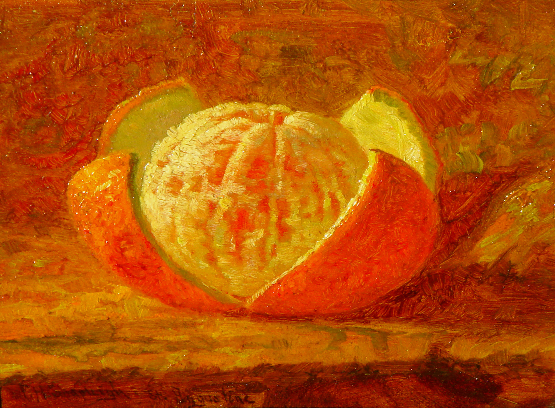 Here is an exercise that will illustrate what I’m getting at. Sit with your journal and an orange, in a quiet place. Write for fifteen minutes describing the dimpled orb of fruit without using the word orange more than once. Go into that room and stay there. You can riff on the orange if you want, start with the fruit, talk about the blossom or the orchard, or the hands that harvested the one you hold in your hand, but Don’t use the word orange more than once in your description. You can use another fruit if you wish, but the same rules apply. So chose a plum, but don’t use purple. Or choose an apple, but don’t use red or green. You get the point. Hold yourself apart from using the descriptor that is most obvious, and what you get in return is a whole new way to relate to description in general.